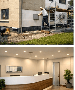 Als erfahrenes Bauunternehmen in Wien bieten wir professionelle Sanierungen von Wohnungen, Häusern, Altbauten, Büros, Gastronomiebetrieben sowie Gewerbeobjekten. Unser Leistungsumfang umfasst Komplettsanierungen, Renovierungen, Innenausbau, Fassadensanierungen sowie technische Modernisierungen.