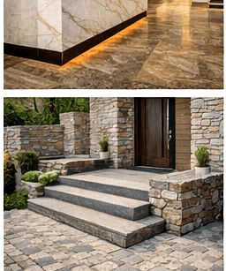 Natursteinarbeiten Hauseingang: Naturstein im Eingangsbereich verbindet Design und Funktionalität.